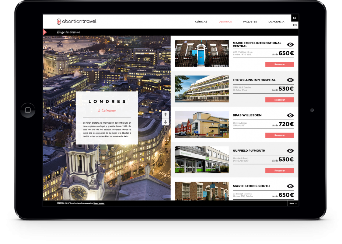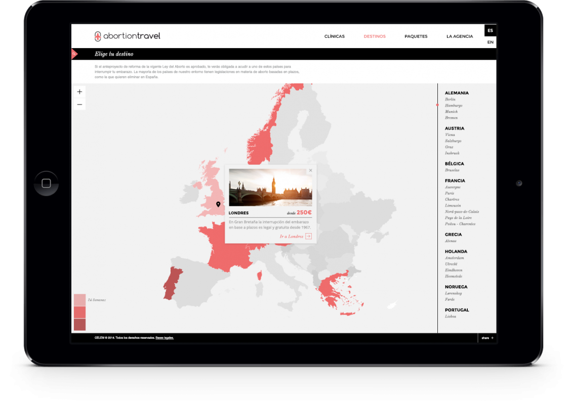 In the event the reform is approved, the only way to have a safe abortion would be to travel to other countries where the law allows for the voluntary interruption of the pregnancy. To show the consequences the reform would have on Spanish women, we created Abortion Travel, “the agency that should never exist”.